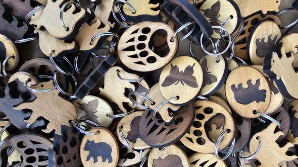 Leseni obeski so ročno izdelani iz lokalnega lesa notranjskih gozdov in vrtov.