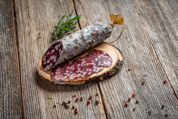 Meso in mesni izdelki lokalnih kmetij se spreminja v mesne izdelke po tradicionalnih receptih – od klobas in salam do drugih suhomesnatih dobrot.